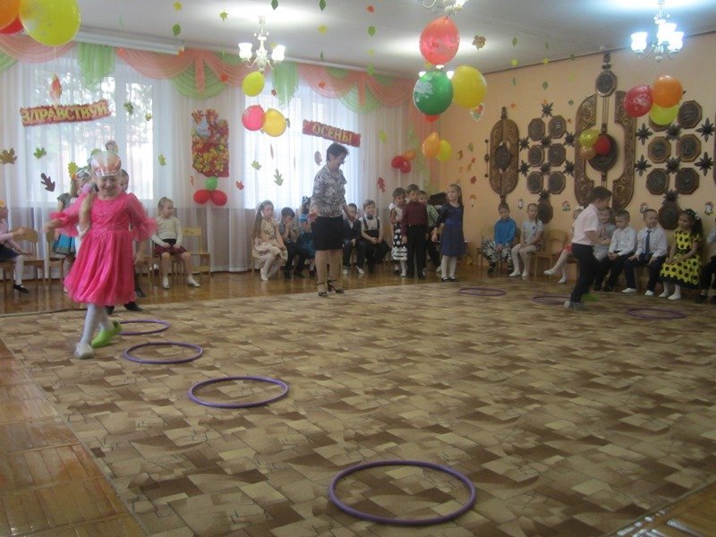 Интересный сценарий не давал расслабиться детям ни на минутку. В гости к ребятам приходили и Осень, и хитрая Баба Яга, и тетушка-Непогодушка. Лесные зверята помогли малышам найти Осень в лесу. Дети пели песенки об осени, играли в веселые игры, танцевали. А самым ярким и запоминающимся эпизодом стал сюрпризный момент – корзина с яблоками для всех ребят.